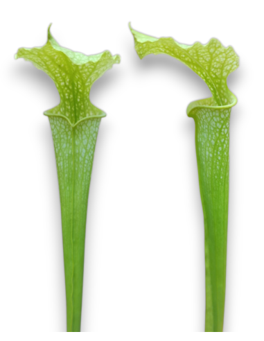 La Sarracenia Moorei All Green es el resultado del cruce entre Sarracenia leucophylla y Sarracenia flava. Destaca por su imponente altura, pudiendo alcanzar hasta 98 cm, lo que la convierte en una de las sarracenias más altas que tenemos actualmente en nuestro vivero y, por lo tanto,en un ejemplar muy impactante visualmente.